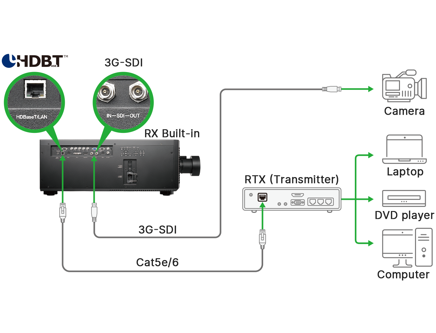 The DU9800Z has built-in 3G-SDI and HDBaseT™ interfaces for long-distance signal transmission of high-quality audiovisual content. HDBaseT™ reduces cabling requirements and installation, saving time and costs.